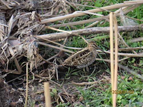 タシギ アオジ バン。若1、成鳥2 魚を食べるオオバン 2025年1月2日 国分側~堀之内貝塚~じゅんさい池 39種 ハヒビロガモ、オカヨシガモ、ヒドリガモ、カルガモ、マガモ、 オナガガモ、コガモ、ホシハジロ、キンクロ、カワラバト、 キジバト、バン、オオバン…